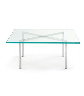 2.314,13 € 2.722,50 € -15%El complemento perfecto para la Silla Barcelona, la mesa de cristal y cromo de Mies Van Der Rohe personifica el diseño moderno y la sofisticación sencilla.