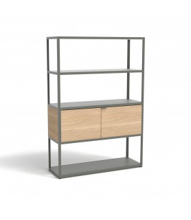 1.232,50 € 1.450,00 € -15%New Order Combination 401 offers a flexible combination of closed and open storage space, with its five-shelf shelving system providing a functional and aesthetic bookshelf and storage solution for home or office spaces. The integrated shelf features wooden doors and panels that break up the uniformity of the grid system, with the natural material creating an effective contrast and adding warmth to the industrial aluminum. Both the aluminum and veneer elements are available in different color options, with the possibility of modifying panels, door, trays and drawers to customize the appearance and functionality, creating infinite combinations and applications.