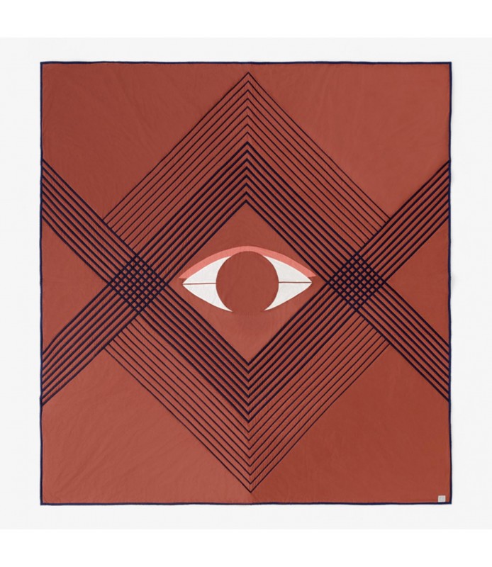 Es difícil apartar la mirada de esta colcha de la marca contemporánea All the Way to Paris, que sitúa la ilustración de un ojo singular en el centro de un diseño geométrico. Acolchado a mano y confeccionado en algodón orgánico, se presenta en dos colores: Brown Earth y Blue Midnight.