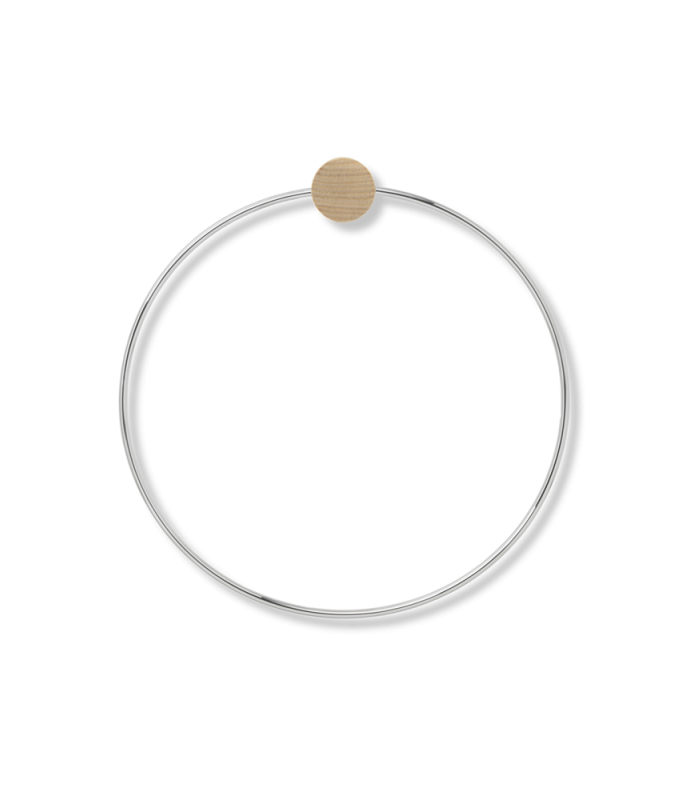 Material: acero inoxidable cromado y fresno con laca transparente Incluye tornillos.