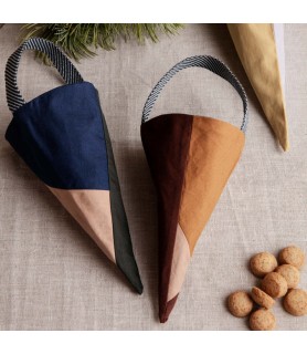 Crea una sensación hecha a mano con estos conos navideños Shay de ferm LIVING, juego de 3. Usa pequeños trozos de tela sobrante de los cojines Shay de ferm LIVING; cada diseño de patchwork está confeccionado con algodón orgánico en colores apagados, con un forro interior para mayor resistencia y calidad. Llene este juego de conos de tela de Navidad con sus golosinas festivas favoritas y cuélguelos de su árbol de Navidad, manijas de puertas u otros lugares de su hogar.