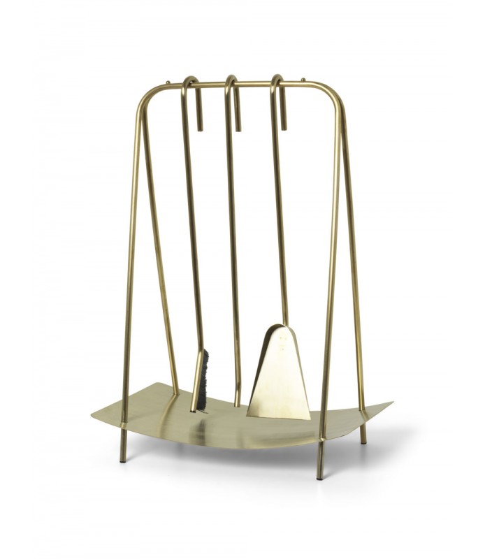 Inspirado en la joyería, este conjunto de herramientas saca lo mejor de su chimenea. Con formas orgánicas y líneas delicadas, el conjunto de acero con recubrimiento en polvo te ayuda a cuidar el fuego con estilo. Combinando funcionalidad y estética, el conjunto ilumina el área alrededor de su hogar o chimenea. El juego incluye un fogonero, una pala, una escoba y el soporte. Disponible en negro y latón.