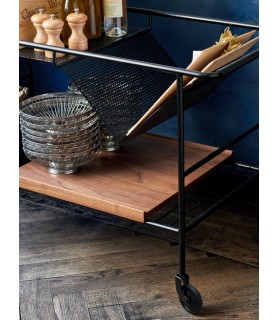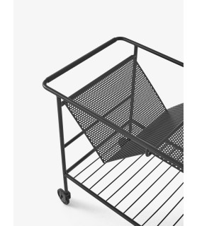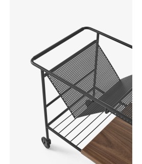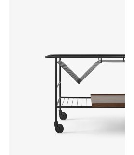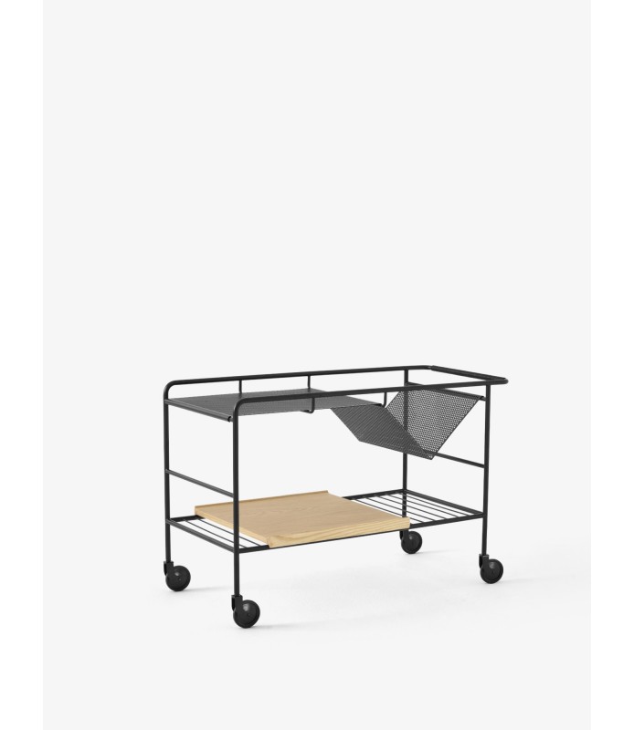 Inspirándose en el "caos creativo" de trabajar desde casa, Note Design Studio decidió crear una unidad de almacenamiento que albergaría su colección de libros, revistas, dibujos y objetos. El resultado fue un carro elegante con un diseño distintivo en forma de V integrado en su superficie que permite almacenar y exhibir fácilmente los libros apilados.