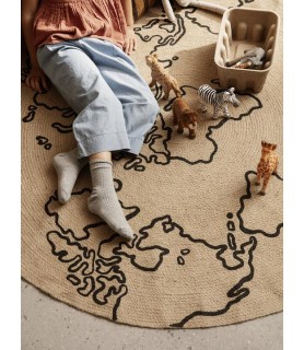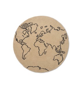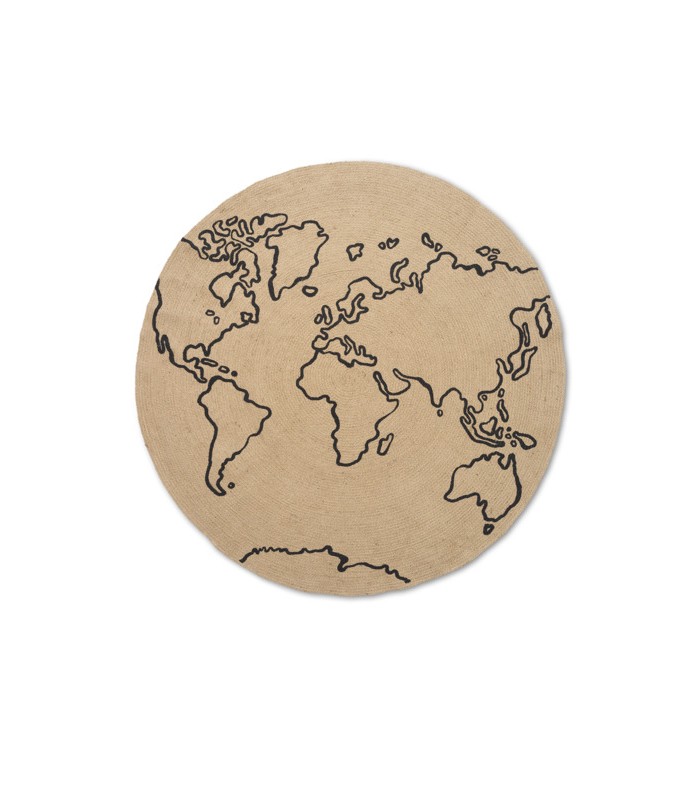 Tejida en yute natural, esta alfombra circular está decorada con un mapamundi impreso. Los tonos naturales de este material duradero y sostenible garantizan que se adapte a cualquier hogar.