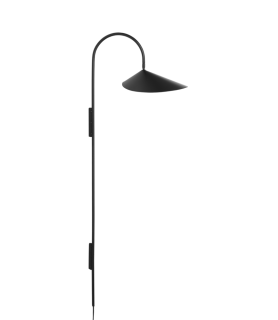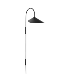 Una versión más alta de nuestra lámpara de pared Arum, esta iteración tiene una silueta esbelta, creada a partir de metal tubular con recubrimiento de polvo negro que oculta un cordón textil. Híbrido entre lámpara de pie y aplique, el elegante diseño negro da personalidad a un espacio, iluminándolo con luz ambiental.