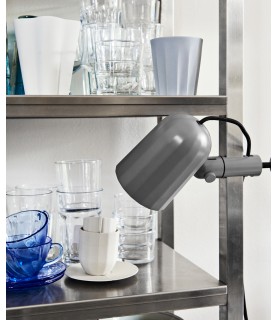 Noc es una lámpara de pinza universal con pantalla de aluminio fundido a presión facetado. Su vástago y clip de aluminio mecanizado ofrece dos puntos de ajuste y se puede usar en tableros de mesa, estantes y cabeceras.