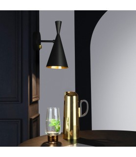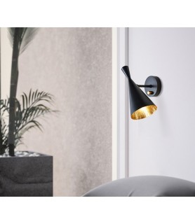 Una variación de la famosa Beat Light original, hecha de latón hilado, la lámpara de pared Beat incorpora la familiar pantalla batida a mano con un dial de dimmer de latón sólido y se puede ajustar para dirigir el haz de luz.