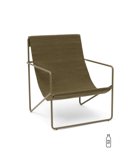 La silla Desert Lounge, una silla modernista con un perfil elegante, está confeccionada a partir de un marco tubular de acero con recubrimiento en polvo y sostiene un asiento textil intercambiable tejido a mano hecho enteramente de plástico reciclado posconsumo que se ha hilado en hilo PET. Adecuado para uso tanto en interiores como en exteriores, el diseño del salón invita a la relajación.