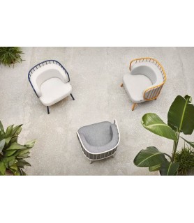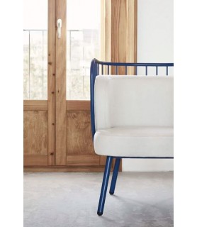 La butaca Nabi está inspirada en las formas envolventes de las alas de una mariposa, de ahí su nombre en coreano.