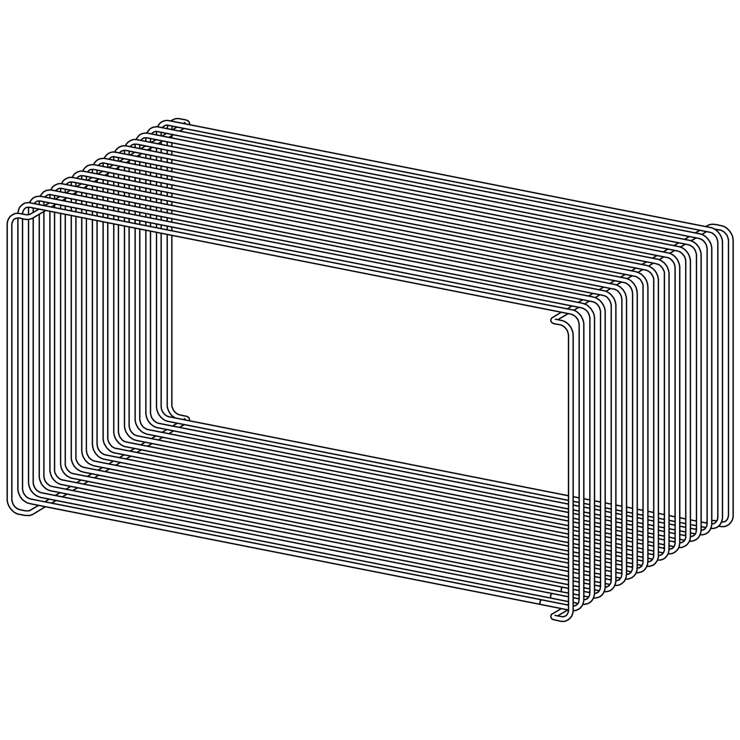 El módulo Panton Wire Extended es parte del icónico sistema de estanterías de alambre de Verner Panton de 1971. El módulo de alambre está disponible en 18,8 cm de profundidad y 34,8 cm de profundidad y está hecho de alambre de 5 mm disponible en Chrome o lacado en uno de los colores Snow, Black y Monarch.