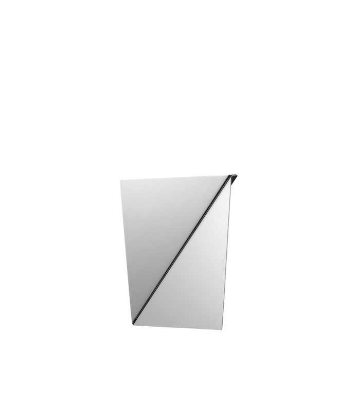 Fabricado con dos piezas plegadas de acero inoxidable pulido a espejo, el espejo Gaze es una estructura de pared escultural y elegante. Sus superficies angulares captan la luz y el entorno de forma sorprendente, creando una imagen dinámica al moverse alrededor de la pieza. Disponible en dos tamaños, Gaze añade un toque sutil pero impactante a cualquier espacio.