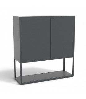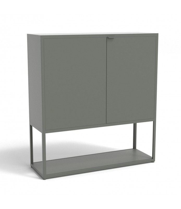 New Order Combination 201 comprende un gran espacio de almacenamiento cerrado con dos estantes ajustables y un espacio de estante abierto. Esta combinación de elementos proporciona una solución de gestión del espacio eficiente y flexible donde los objetos se pueden almacenar de forma segura o mostrar abiertamente. La rejilla de aluminio está disponible en diferentes opciones de color, con la posibilidad de añadir paneles, puertas, bandejas y cajones para personalizar el aspecto y la funcionalidad, creando infinitas combinaciones y aplicaciones.