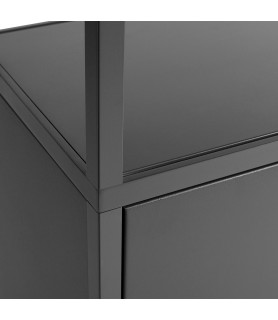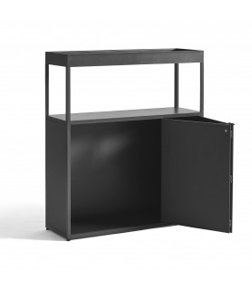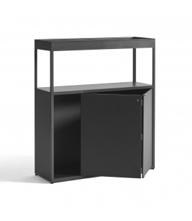 New Order Combination 204 comprende un gran espacio de almacenamiento cerrado con puertas de acero y un estante abierto con una bandeja superior para exhibir, esta combinación de elementos proporciona una solución de gestión de espacio eficiente y flexible donde los objetos se pueden almacenar de forma segura o exhibir abiertamente. Tanto los elementos de aluminio como los de acero están disponibles en diferentes opciones de color, con la posibilidad de añadir paneles, puertas, bandejas y cajones para personalizar el aspecto y la funcionalidad, creando infinitas combinaciones y aplicaciones.