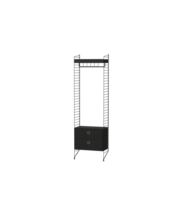 Esta combinación de suelo de una sección es perfecta para pasillos de tamaño mediano. Estante metálico de borde alto equipado con accesorios que le ofrece mayores posibilidades de almacenamiento. Los cajones de la parte inferior le ofrecen espacio para guardar guantes y bufandas.