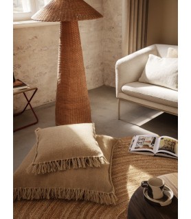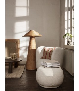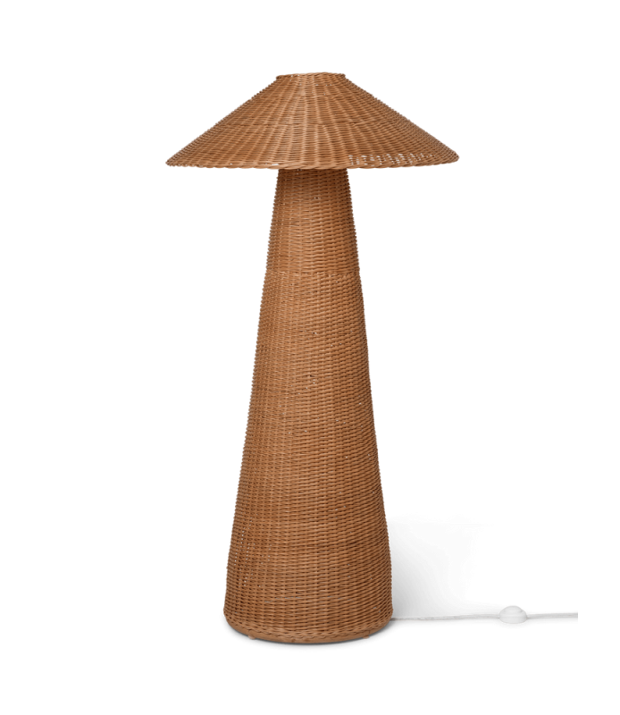 Trenzada a mano con ratán natural, nuestra serie Dou celebra el hermoso contraste entre las formas geométricas y las cualidades orgánicas y de textura del material. Esta lámpara de pie presenta dimensiones de gran tamaño y una luz suave y cómoda, mientras que la pantalla permite pequeños destellos de iluminación a través del ratán trenzado y agregará textura y tacto a su espacio vital.