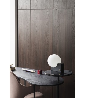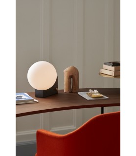 La lámpara Journey es una fusión de dos formas geométricas clásicas, la esfera y el rectángulo. La pantalla redonda de cristal opal recuerda a la luna. Ya sea que haya luna llena o no, la intención es que disfrutes del diseño y todos los estados de ánimo que puedes crear.
