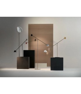 La colección se compone de una versión de escritorio y otra de pie que juegan con contrapesos al mezclar materiales de distinta densidad, como aluminio en el cabezal o acero en el extremo opuesto. Esta estructura permite mover la lámpara con gran precisión alcanzando alturas y distancias distintas para ajustar la posición y la dirección del haz de luz.