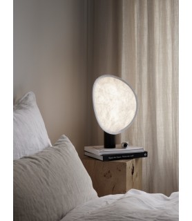 The airy, cloud-like shade that characterises New Works’ Tense Pendant is continued in an intriguing table lamp. Its flowing shape is crafted from tightened carbon rods and light, durable, and 100% recyclable Tyvek, which is washed to achieve the appealing crinkled effect. Resting in an almost vertical position on a streamlined base, the Tense Table Lamp provides ample opportunity to enjoy the shade’s beautiful texture and soft diffusion of light.