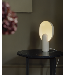 La lámpara de mesa Ware reúne dos formas fluidas distintas en un solo objeto. Apareciendo como un par de conchas acurrucadas en una costa fría, el frente redondeado oculta el difusor de iluminación, lo que permite que una iluminación suave se hinche desde adentro. Una vez iluminada, se crea una sensación de profundidad entre las capas texturizadas de las piezas. Una unidad entre la luz y la oscuridad.