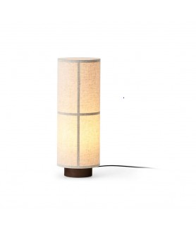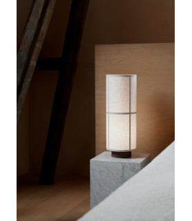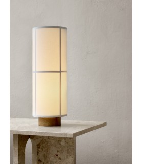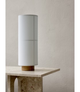 Hashira, lámpara de mesa Con forma de la forma geométrica básica de la arquitectura, la esbelta lámpara de mesa cilíndrica se inspira en la tela translúcida de las linternas japonesas y las persianas para difundir suavemente la luz en múltiples direcciones. Se asienta sobre una base de fresno que sustenta la expresión minimalista.
