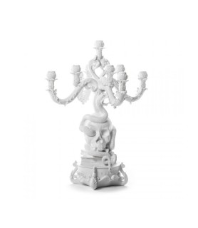Candelabros barrocos en blanco y negro. Un estilo ecléctico para una cena inesperada a la luz de las velas. candelabro de 5 brazos