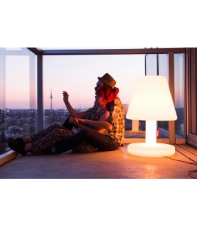 La Fatboy Edison the Grand es icónica y muy grande. Su diseño se basa en una lámpara de dormitorio clásica, aunque notablemente más grande. Esta lámpara de pie LED blanca con atenuador tiene un diseño minimalista y líneas puras, pero resulta muy práctica y es de todo menos vieja y polvorienta. Experimente con la calidez atmosférica de la Edison the Grand y regule la intensidad de la luz con el control Fatboy light control app. Gracias a los tres modos de atenuación, podrá disfrutar del grado de luz que desee, tanto en interiores como en exteriores. Esta lámpara blanca de pie dispone una fuente de luz LED y está fabricado de LLDPE transparente. Este es un plástico que no solo ofrece una luz difusa y suave, sino que también es resistente a la suciedad y la humedad.