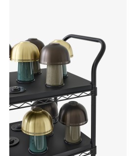 Bautizada así por la técnica tradicional de la alfarería japonesa, Raku es una lámpara compacta de gran presencia. Inspirándose en la antigua forma de arte, la lámpara presenta una base de cerámica esculpida a mano con un esmalte crepitante que varía ligeramente en cada pieza, sirviendo como un recordatorio para disfrutar de las imperfecciones.