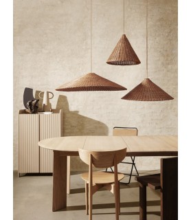 Nuestra serie Dou, trenzada a mano con ratán natural, celebra el hermoso contraste entre las formas geométricas y las cualidades orgánicas y texturales del material. Esta pantalla proporcionará una iluminación superior brillante y, al mismo tiempo, dejará pequeños destellos de iluminación a través de la pantalla. Esta pantalla se adapta a nuestro Juego de Cordones de Tela – Colgante. (Sin incluir)