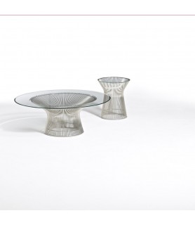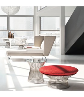En 1966, la Colección Platner capturó las formas “decorativas, suaves y elegantes” que comenzaban a infiltrarse en el vocabulario moderno. La icónica mesa auxiliar se crea soldando varillas de acero curvadas a marcos circulares, sirviendo simultáneamente como estructura y adorno.