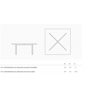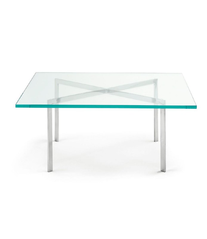 El complemento perfecto para la Silla Barcelona, la mesa de cristal y cromo de Mies Van Der Rohe personifica el diseño moderno y la sofisticación sencilla.