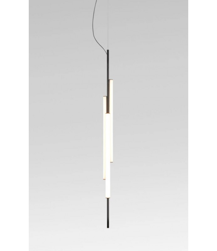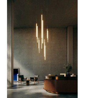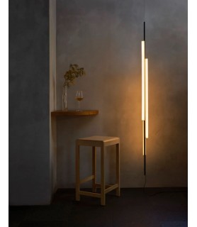 Ambrosia es, en esencia, una línea de luz que puede convertirse en un sistema modular, capaz de extender su iluminación y adaptarse a cualquier espacio.  Un diseño que recupera y revisa la luz de la linestra, atemporal, la actualiza y consigue que su estructura sencilla y su iluminación difusa aporten belleza al lugar. Esta colección amplía sus posibilidades proponiendo un cambio del plano de luz, pasando de iluminar en horizontal a hacerlo en vertical.