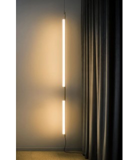 Ambrosia es, en esencia, una línea de luz que puede convertirse en un sistema modular, capaz de extender su iluminación y adaptarse a cualquier espacio.  Un diseño que recupera y revisa la luz de la linestra, atemporal, la actualiza y consigue que su estructura sencilla y su iluminación difusa aporten belleza al lugar. Esta colección amplía sus posibilidades proponiendo un cambio del plano de luz, pasando de iluminar en horizontal a hacerlo en vertical.