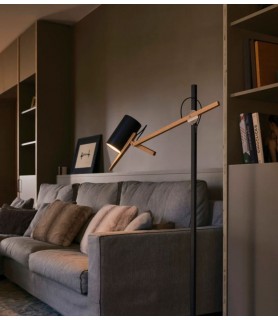 La madera y el metal se combinan en un diseño de formas geométricas básicas. Scantling se basa en un sistema muy funcional y flexible en el que todos los movimientos de la pantalla, con rotación completa, quedan resueltos mediante rótulas y brazos para crear una luz versátil, fácil de mover. Además, su precisión técnica no requiere muelles ni contrapesos a la vista para mantener la posición escogida.