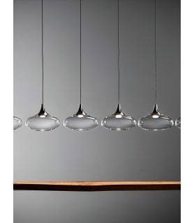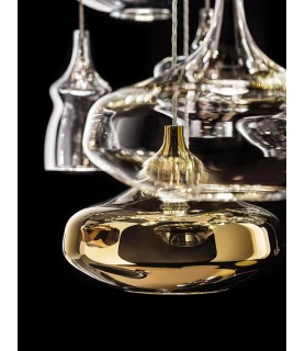 Con su sabor retro, Nostalgia cuenta con elegancia antiguas historias de vidrio soplado en tres formas sinuosas que pueden combinarse a voluntad. La perfección del vidrio, la innovadora tecnología LED y los seis refinados acabados hacen de Nostalgia una lámpara extremadamente contemporánea y versátil que permite crear fascinantes atmósferas tanto encendida como apagada.