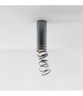 Juega con la desestructuración del perfil de base, la luz proyectada a través de los anillos en equilibrio diseña sombras finas en la definición de una calidad perfecta de la luz en el espacio.