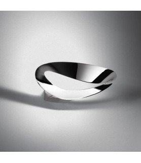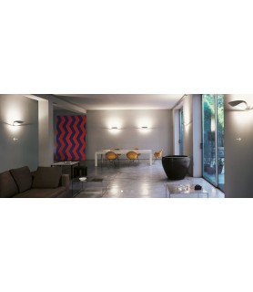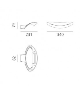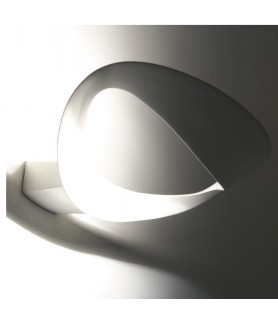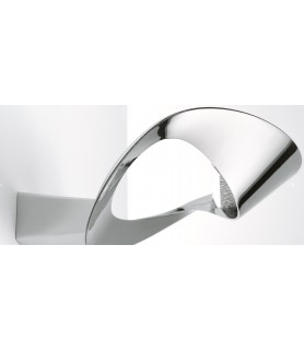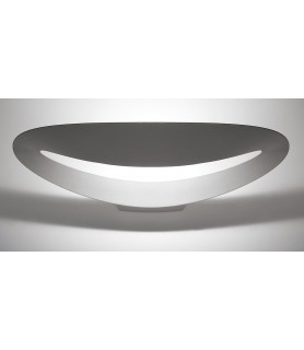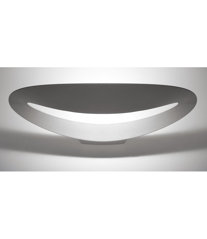La geometría del cuerpo, sinuosa y ligera como una cinta, oculta la fuente y refleja también hacia abajo la luz emitida principalmente hacia arriba, ampliando la emisión en el espacio.