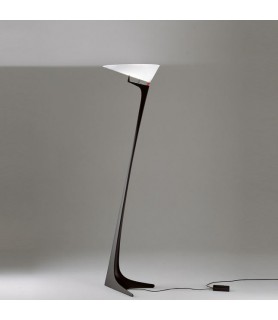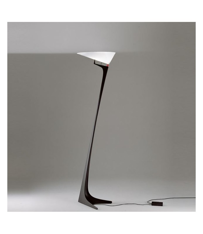 La silueta de Montjuic se caracteriza por la simetría de las formas triangulares de la base y el difusor, en equilibrio sobre una esfera roja.