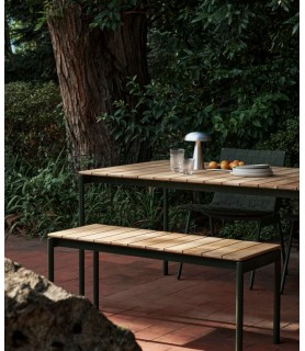Una celebración de la naturaleza y la materialidad, la colección para exteriores Ville de Anderssen & Voll abraza la vida al aire libre con una combinación de solidez y suavidad. El AV27, un banco compacto y de tamaño más pequeño de los dos de la colección, tiene las proporciones perfectas para acompañar a la mesa AV25, pero también se destaca por sí solo como una opción de asiento para entornos de hospitalidad más pequeños y hogares privados. La teca proporciona una superficie cálida y acogedora que puede aceitarse o dejarse sin tratar según las preferencias individuales.