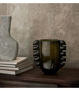 El Jarrón Alas es una pieza distintiva que combina armoniosamente la fluidez del vidrio con formas estructurales. La palabra Alas proviene de la palabra española que significa "ala", en alusión a las formas únicas y ornamentales que adornan los lados del jarrón. Hecho a mano, cada jarrón Alas puede tener ligeras variaciones, lo que hace que cada uno sea completamente único.