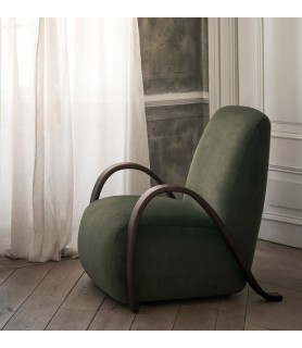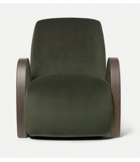 Material: Tela: Terciopelo rico. 100% poliéster. Asiento/respaldo: Estructura de madera con espuma de PU de alta resiliencia y guata de poliéster. Reposabrazos: roble certificado FSC™. Manchado oscuro