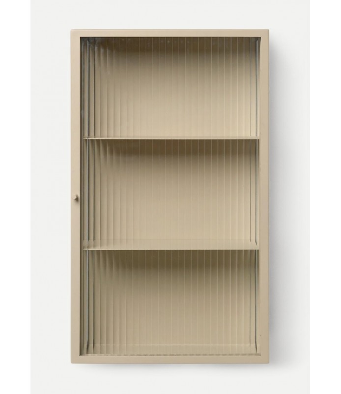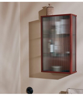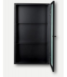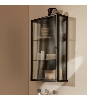El armario de pared Haze es un práctico armario de pared para guardar objetos más pequeños. El marco de acero con recubrimiento en polvo con elegantes paneles y puerta de vidrio de caña proporciona una estética industrial y es la solución ideal para guardar vasos en la cocina o artículos de belleza en el baño. También funciona igual de bien en un pasillo lleno de objetos cotidianos como llaves y gafas de sol.