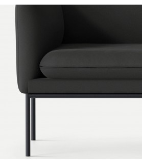 Este acogedor sillón tiene una estricta forma exterior escultórica que complementa las curvas del acogedor y redondeado interior. Con su tapizado ajustado y su estructura simple hecha de acero con recubrimiento en polvo, la silla logra una apariencia limpia y atemporal con un toque femenino y una sensación elevada gracias a sus patas delgadas y delicadas.