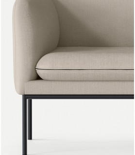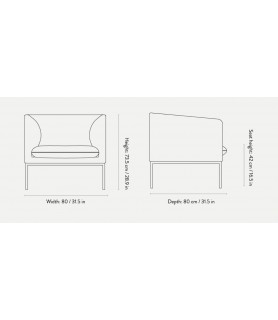 Este acogedor sillón tiene una estricta forma exterior escultórica que complementa las curvas del acogedor y redondeado interior. Con su tapizado ajustado y su estructura simple hecha de acero con recubrimiento en polvo, la silla logra una apariencia limpia y atemporal con un toque femenino y una sensación elevada gracias a sus patas delgadas y delicadas.