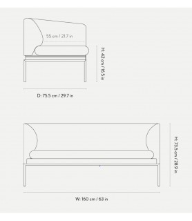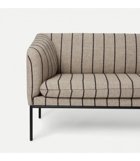 Este moderno y multifuncional biplaza tiene una estricta forma exterior escultórica que complementa el atractivo interior redondeado con curvas orgánicas, mientras que el patrón de rayas de gran tamaño de nuestra tela Made to Order 'Pasadena' es una adición clásica que encaja en cualquier espacio interior. Sin embargo, no importa el color que elijas, este sofá tiene un aspecto limpio y atemporal con su tapizado ajustado y su estructura simple en metal con recubrimiento en polvo, pero con un toque femenino debido a las suaves curvas interiores y los materiales cálidos.