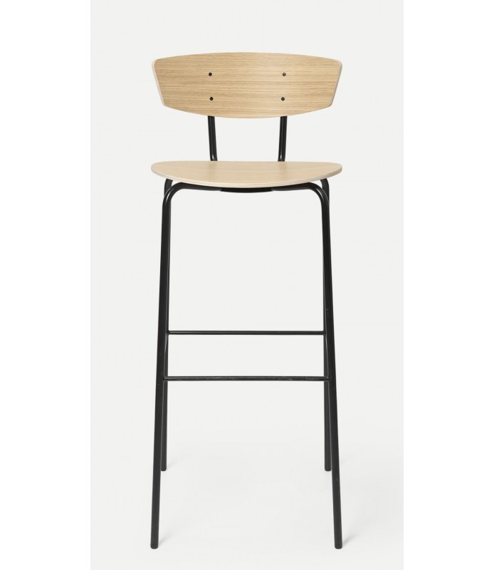 Manteniéndose en línea con la esencia de la serie de asientos Herman, esta adición de barra con certificación FSC™ conserva las líneas elegantes y la comodidad del respaldo curvo, formando una silla clásica en la intersección de estética y función. Se trata de una versión alta del taburete de bar con reposapiés para mayor comodidad al sentarse, perfecta para pasar noches en buena compañía en la cocina o en el bar.