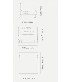 Material: Tela: Tonus de Kvadrat. 90% lana virgen y 10% helanca. Respaldo/asiento: Espuma de PU y guata de poliéster con estructura interior de madera. Patas: Abedul macizo tapizado o roble macizo teñido oscuro. Madera certificada FSC™ Mix
