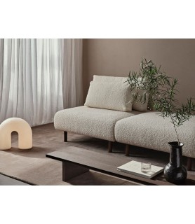 Material: Tejido: Bouclé Nórdico. 30% lana, 30% algodón, 30% acrílico, 5% poliéster y 5% otras fibras. Respaldo/asiento: Espuma de PU y guata de poliéster con estructura interior de madera. Patas: Abedul macizo tapizado o roble macizo teñido oscuro. Madera certificada FSC™ Mix