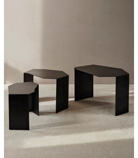 Inspirándose en los bordes afilados y en bruto de la cerámica, el vidrio y la roca rotos, las mesas Shard añaden una expresión llamativa a su espacio. Guarde las mesas una debajo de la otra para lograr una apariencia elegante o colóquelas separadas para crear una disposición dinámica. Las mesas Shard se pueden utilizar como mesa de centro y son perfectas para añadir carácter a cualquier habitación, ya que incorporan un diseño que combina a la perfección la elegancia con un toque de belleza cruda.