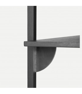 Material: Estante: Chapa de roble ahumado con núcleo de MDF. Perfiles: Roble macizo ahumado. Soportes: Latón. Madera certificada FSC™ Mix