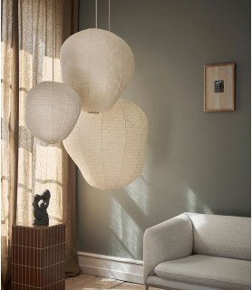 Información: Alto: 80 x Fondo: 76 cm / Alto: 31,5 x Fondo: 29,9 en forma orgánica. Fuente de luz recomendada: bombilla LED E27. Juego de bombilla y cable textil cerámico no incluidos. Diseño registrado